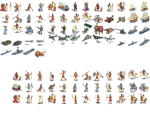 First time poster, long time player. I'd like to contribute some pixel art units and other stuff.. But I don't know how to make a ruleset (when I tried, the game crashed and wont load :oops: ), so if someone would like to help with that, that'd be great. I've attached the unit.png, and the unit.spec. Each unit is 48x48. All I did was recolor some sprites according to this 16-bit color pallet: http://pixeljoint.com/pixelart/64505.htm