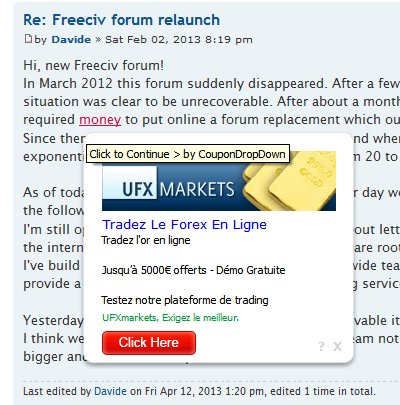When/where are you seeing this? When visiting forum.freeciv.org? (The stuff in the background of your screenshot looks vaguely like this phpBB forum, but I don't recognise the content.)