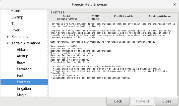 In Freeciv client they do look the same. And middle-clicking on the tile should tell you exactly what is there.Civothy wrote:Also, how do you upgrade to a Fortress? I can't seem to do that, either. I imagine you first build a Fort, then build a Fortress on top of it? Are they visually the same? That might explain things.