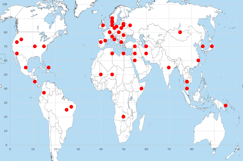 Hi all, here is a rough approximation of our current geographical distribution of Core civs:
