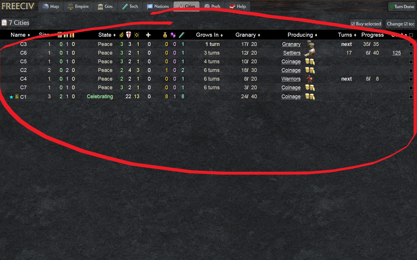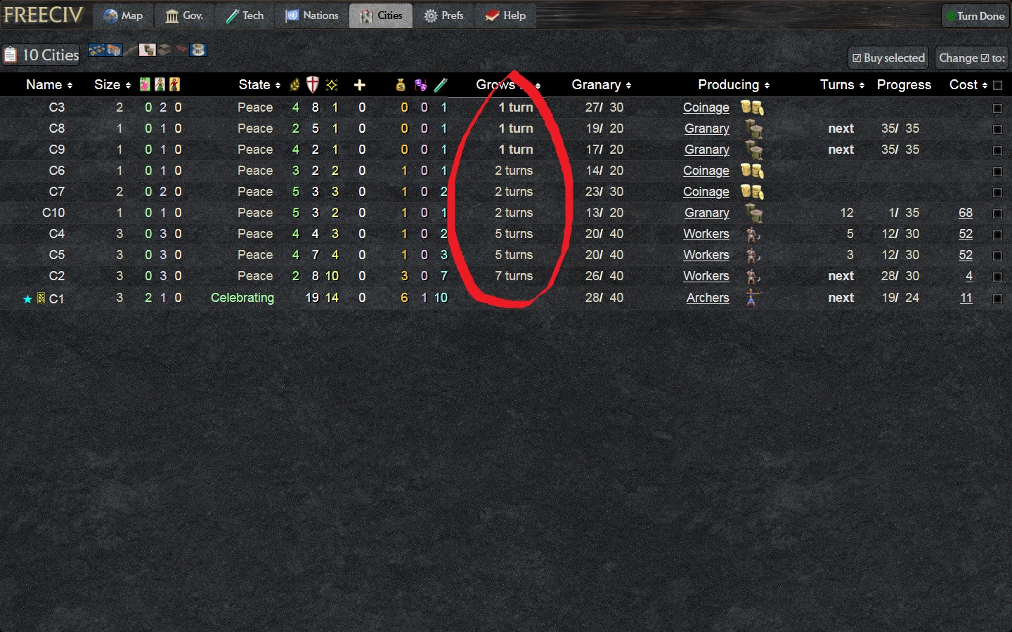 10 cities almost all with granaries. Now wondering for any form celebrations with 3 size cities...