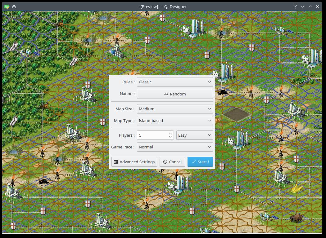As you saw I posted a few patches. For now, this (patch 7489) is as close to the layout above as I can get. The handling of client pages is very difficult to understand, let alone modify. This is caused by the class fc_client being a God object (an anti-pattern you'll find many warnings against). I'll start working on a more C++ish way of communicating with the C backend, but doing it well will take some time. I'll of course work step by step − no 1MB patch ahead. Hopefully this will also make maintenance/future modifications easier.