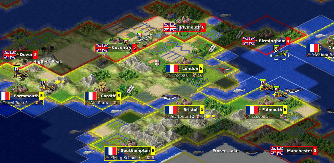 Attacks only become reasonable with bombers and transports+gliders/paras, yet paras are weak so securing a conquered city takes a long time (or you have to plan your attack well in advance and hope that there's no scout).